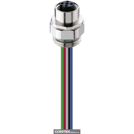 M12 Standard Sensor/Actuator Receptacle Connector: Female, front mount positionable, M12 - mating side, stranded wires - connecting side, 5-pin, A-coded, unshielded, metallic grey housing, 50 V AC / 60 V DC, 4 A
