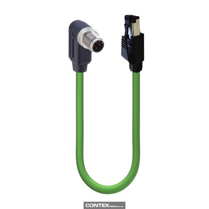Fast Ethernet Cat5e Data Double-Ended Cordset: Male angled D-coded black M12 Standard to male straight RJ45-coded black RJ45 Field Attachable, shielded, 30 V AC / 42 V DC, 1.5 A; PUR green cable, 4-wires, 2x2x0.34 mm²