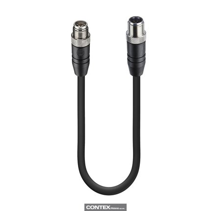 Fast Ethernet Cat5e Data Double-Ended Cordset: Male straight X-coded black M12 Railway to male straight D-coded black M12 Railway, shielded, 50 V AC / 60 V DC, 0.5 A; X-FRNC black cable, 4-wires, 0.34 mm²