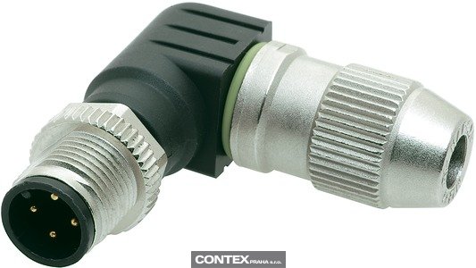 Cable connector, Angled, Male, A-coding, HARAX connection technology, Polyamide (PA), Contacts: 4, Brass Au over Ni Mating side Více