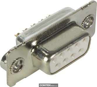 Connector, Solder cup termination, Rated current: 7.5 A, Female, Size: D-Sub 1, Thermoplastic resin, glass-fibre filled (PBTP), Shell: steel, tin plated, White, Contacts: 9, Conductor cross-section: 0.5 mm², Copper alloy, Noble metal over Ni Mating side, Sn over Ni Termination side