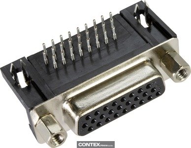 Connector, Wave soldering termination, Rated current: 2 A, Female, Size: D-Sub 2, Thermoplastic resin, glass-fibre filled (PBTP), Shell: steel, nickel plated, Black, Contacts: 26, Copper alloy, Noble metal over Ni Mating side, Sn over Ni Termination side