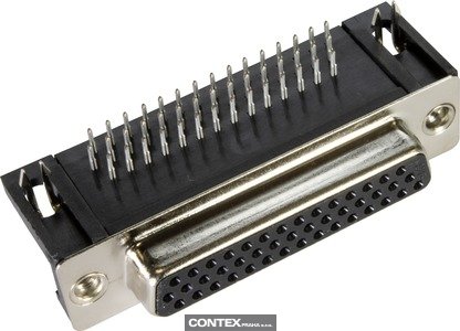 Connector, Wave soldering termination, Rated current: 2 A, Female, Size: D-Sub 3, Thermoplastic resin, glass-fibre filled (PBTP), Shell: steel, nickel plated, Black, Contacts: 44, Copper alloy, Noble metal over Ni Mating side, Sn over Ni Termination side