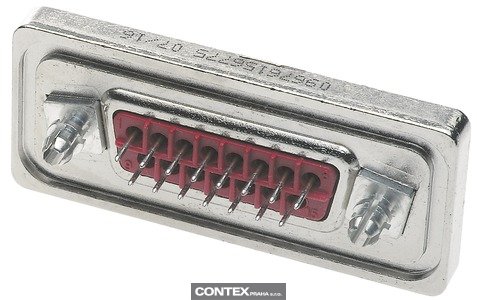 Connector, With rear frame, Wave soldering termination, Rated current: 5 A, Female, Size: D-Sub 2, Thermoplastic resin, glass-fibre filled, Shell: brass, tin plated, Red, Contacts: 15 With grounding pin, Copper alloy, Noble metal over Ni