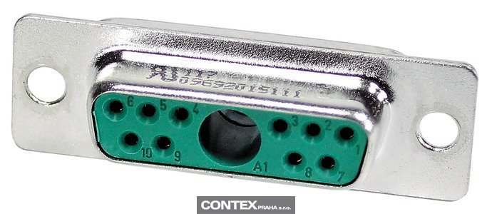 Connector, Solder cup termination, Rated current: 5 A, Female, Size: D-Sub 2, Thermoplastic resin, glass-fibre filled (Polyester), Shell: steel, tin plated, Green, Contacts: 11, Conductor cross-section: 0.5 mm², Copper alloy, Noble metal over Ni