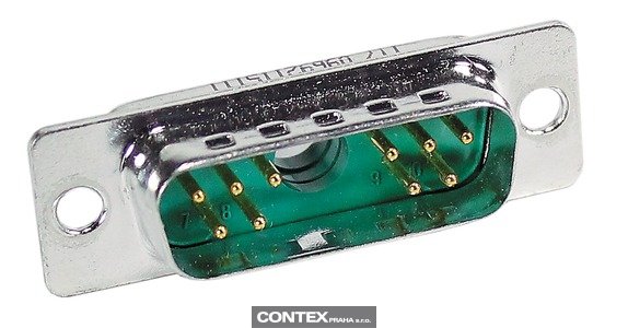 Connector, Solder cup termination, Rated current: 5 A, Male, Size: D-Sub 2, Thermoplastic resin, glass-fibre filled (Polyester), Shell: steel, tin plated, Green, Contacts: 11, Conductor cross-section: 0.5 mm², Copper alloy, Noble metal over Ni
