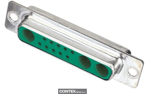 Connector, Solder cup termination, Rated current: 5 A, Female, Size: D-Sub 3, Thermoplastic resin, glass-fibre filled (Polyester), Shell: steel, tin plated, Green, Contacts: 13, Conductor cross-section: 0.5 mm², Copper alloy, Noble metal over Ni