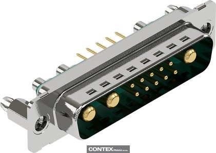 Connector, Wave soldering termination, Rated current: 5 A, Male, Size: D-Sub 3, Thermoplastic resin, glass-fibre filled (PBT), Shell: steel, tin plated, Green, Contacts: 13, Copper alloy, Gold plated Mating side, Sn over Ni Termination side