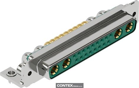 Connector, Wave soldering termination, Rated current: 5 A, Female, Size: D-Sub 4, Thermoplastic resin, glass-fibre filled (PBT), Shell: steel, tin plated, Green, Contacts: 21, Copper alloy, Gold plated Mating side, Sn over Ni Termination side
