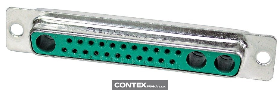 Connector, Solder cup termination, Rated current: 5 A, Female, Size: D-Sub 4, Thermoplastic resin, glass-fibre filled (Polyester), Shell: steel, tin plated, Green, Contacts: 25, Conductor cross-section: 0.5 mm², Copper alloy, Noble metal over Ni
