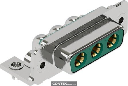 Connector, Wave soldering termination, Female, Size: D-Sub 2, Thermoplastic resin, glass-fibre filled (PBT), Shell: steel, tin plated, Green, Contacts: 3, Copper alloy, Gold plated Mating side, Sn over Ni Termination side