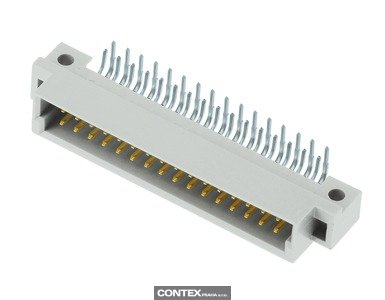 Male connector, Wave soldering termination, Rated current: 2 A, Contacts: 32, Angled, Copper alloy, Noble metal over Ni Mating side, Sn over Ni Termination side, Performance level: 2, acc. to IEC 60603-2, Coding: Coding with loss of contacts, PCB fixing: With fixing flange, Thermoplastic resin, glass-fibre filled, RAL 7035 (light grey)