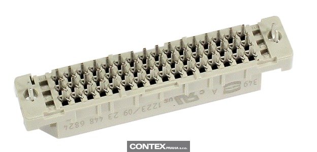 Female connector, Wave soldering termination, Rated current: 2 A, Contacts: 48, Straight, Copper alloy, Noble metal over Ni Mating side, Sn over Ni Termination side, Performance level: 2, acc. to IEC 60603-2, Coding: Coding with loss of contacts, PCB fixing: With fixing flange, With snap-in clip, Thermoplastic resin, glass-fibre filled, RAL 7032 (pebble grey)