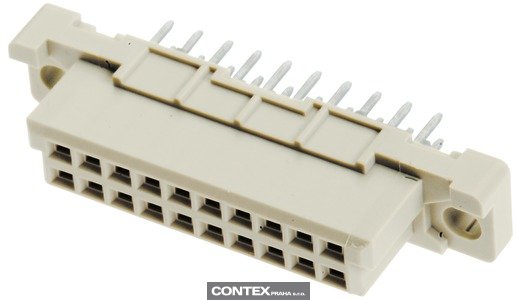 Female connector, Wave soldering termination, Rated current: 2 A, Contacts: 20, Straight, Copper alloy, Noble metal over Ni Mating side, Sn over Ni Termination side, Performance level: 2, acc. to IEC 60603-2, Coding: Coding with loss of contacts, PCB fixing: With fixing flange, Thermoplastic resin, glass-fibre filled, RAL 7032 (pebble grey)