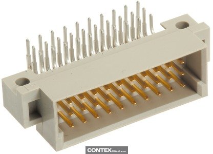 Male connector, Wave soldering termination, Rated current: 2 A, Contacts: 20, Angled, Copper alloy, Noble metal over Ni Mating side, Sn over Ni Termination side, Performance level: 2, acc. to IEC 60603-2, Coding: Coding with loss of contacts, PCB fixing: With fixing flange, Thermoplastic resin, glass-fibre filled, RAL 7032 (pebble grey)