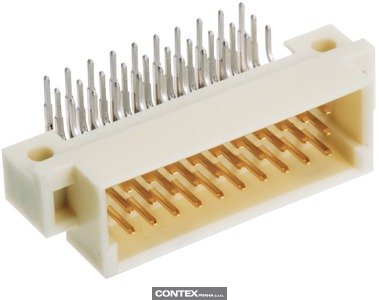 Male connector, Reflow soldering termination (THR), Rated current: 2 A, Contacts: 30, Angled, Copper alloy, Noble metal over Ni Mating side, Sn over Ni Termination side, Performance level: 2, acc. to IEC 60603-2, Coding: Coding with loss of contacts, PCB fixing: With fixing flange, Thermoplastic resin, glass-fibre filled, Beige