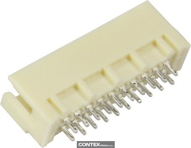 Male connector, Reflow soldering termination (THR), Rated current: 2 A, Contacts: 20, Straight, Copper alloy, Noble metal over Ni Mating side, Sn over Ni Termination side, Performance level: 2, acc. to IEC 60603-2, Coding: Coding with loss of contacts, PCB fixing: Without fixing flange, Thermoplastic resin, glass-fibre filled, Beige