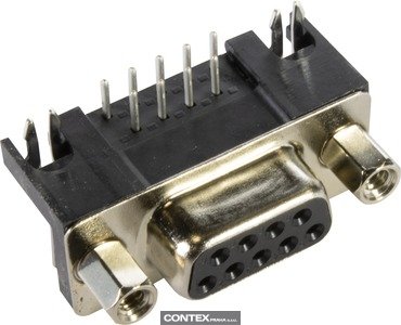 Connector, U.S. Footprint, Wave soldering termination, Rated current: 6.5 A, Female, Size: D-Sub 1, Thermoplastic resin, glass-fibre filled (PBTP), Shell: Plated steel, Black, Contacts: 9 With grounding pin, Copper alloy, Noble metal over Ni