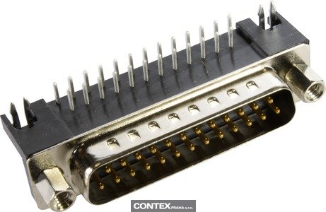 Connector, U.S. Footprint, Wave soldering termination, Rated current: 6.5 A, Male, Size: D-Sub 3, Thermoplastic resin, glass-fibre filled (PBTP), Shell: Plated steel, Black, Contacts: 25 With grounding pin, Copper alloy, Noble metal over Ni