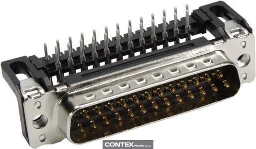 Connector, Wave soldering termination, Rated current: 6.5 A, Male, Size: D-Sub 3, Thermoplastic resin, glass-fibre filled (PBTP), Shell: Plated steel, Black, Contacts: 25, Copper alloy, Noble metal over Ni