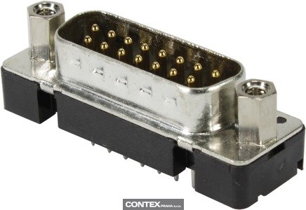 Connector, Wave soldering termination, Rated current: 7.5 A, Male, Size: D-Sub 2, Thermoplastic resin, glass-fibre filled (PBTP), Shell: Plated steel, Black, Contacts: 15, Copper alloy, Noble metal over Ni