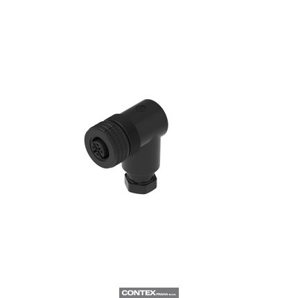 M12 Field Attachable Connector: female, angled, 4-pin, A-coded, unshielded, black housing, screw type, 230 V AC/DC