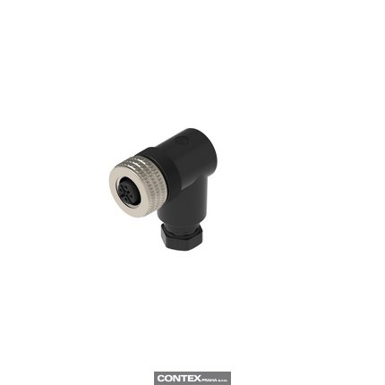 M12 Field Attachable Connector: female, angled, 5-pin, A-coded, unshielded, black housing, screw type, 50 V AC / 60 V DC