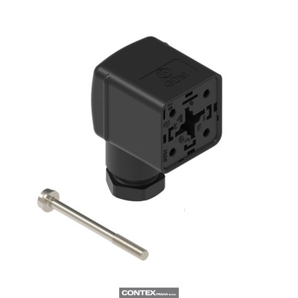 Form A, 18mm - Female Angled | #Contacts: 2+Ground (PE), Screw Type | Recovery Diode (FRD) | 250 V / 10A / 10 A | Black Housing, Black M16 Cable Gland | Included: Central Screw | Bulk Packaging