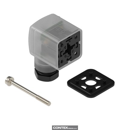 Form A, 18mm - Female Angled | #Contacts: 2+Ground (PE), Screw Type | Recovery Diode (FRD) & yellow LED | 24 V / 10A | Translucent Housing, Black PG11 Cable Gland | Included: Central Screw & Captive Gasket | Bulk Packaging