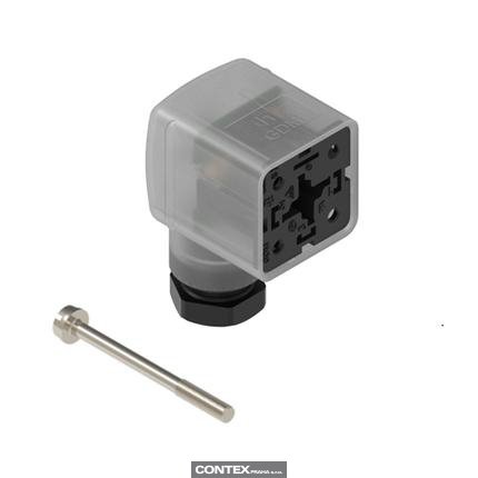 Form A, 18mm - Female Angled | #Contacts: 2+Ground (PE), Screw Type | Reverse Polarity Protection & yellow LED | 24 V / 1A | Translucent Housing, Black PG11 Cable Gland | Included: Central Screw | Bulk Packaging