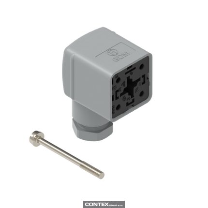 Form A, 18mm - Female Angled | #Contacts: 3+Ground (PE), Screw Type | No Protective Circuit | 250 V / 16A | Grey Housing, Grey PG9 Cable Gland | Included: Central Screw | Bulk Packaging