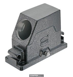 Hood, Size: 16 HPR, Low construction, Central locking lever, 45° side entry, 1x M40, Material (hood/housing): Aluminium die-cast, Corrosion resistant, Powder-coated, RAL 9005 (jet black)