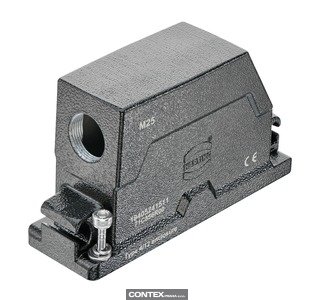 Hood, Size: 24 HPR, Low construction, Screw locking, Stainless steel, Side entry, 1x M25, Material (hood/housing): Aluminium die-cast, Corrosion resistant, Powder-coated, RAL 9005 (jet black)
