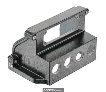 Bulkhead mounted housing, Angled, Size: 24 HPR, Screw locking, for 1x 24 HPR 4x M32, Material (hood/housing): Aluminium die-cast, Corrosion resistant, Powder-coated, RAL 9005 (jet black), Material (seal): NBR