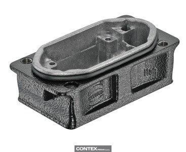 Bulkhead mounted housing, Size: 6 HPR, Low construction, Screw locking, Material (hood/housing): Aluminium die-cast, Corrosion resistant, Powder-coated, RAL 9005 (jet black), Material (seal): NBR