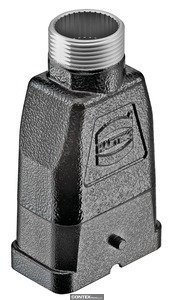 Hood, for Han-Compact half cable gland, With separate PE terminating point, for all inserts of size Han-Compact, Size: Han-Compact, Single locking lever, Top entry, 1x M25, Material (hood/housing): Zinc die-cast, Powder-coated, RAL 9005 (jet black)