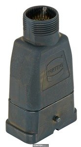 Hood, for Han-Compact half cable gland, With separate PE terminating point, for all inserts of size Han-Compact, Size: Han-Compact, Single locking lever, Top entry, 1x M25, Material (hood/housing): Zinc die-cast, Chromated, RAL 9005 (jet black)