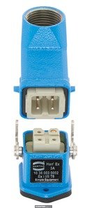 Connector sets, Complete set, Screw termination, Rated current: 10 A, Contacts: 3, Size: 3 A, Single locking lever, Angled entry, 1x M20, Material: Zinc die-cast, Powder-coated, Degree of protection: IP67 with seal screw 09 20 000 9918