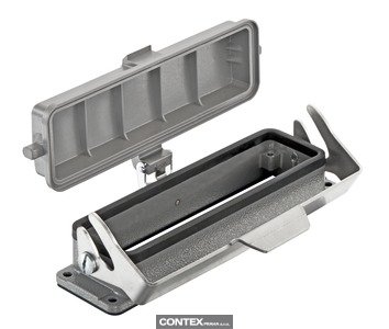 Bulkhead mounted housing, With thermo-plastic cover, Size: L32 B, High construction, Single locking lever, Steel, zinc plated, Material (hood/housing): Aluminium die-cast, Powder-coated, RAL 7037 (dust grey), Material (seal): NBR