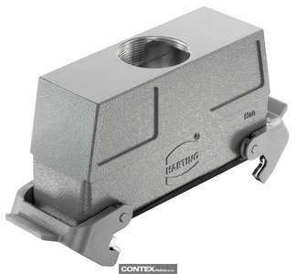 Cable to cable housing, Size: L32 B, High construction, Double locking lever, Polycarbonate (PC), Stainless steel, Top entry, 1x M40, Material (hood/housing): Aluminium die-cast, Powder-coated, RAL 7037 (dust grey), Material (seal): NBR