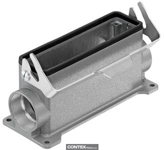 Surface mounted housing, Size: L32 B, High construction, Single locking lever, Steel, zinc plated, Side entry, 2x M40, Material (hood/housing): Aluminium die-cast, Powder-coated, RAL 7037 (dust grey), Material (seal): NBR