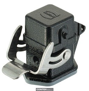 Bulkhead mounted housing, Straight, With metal cover, With seal, Size: 3 A, Single locking lever, Stainless steel, Material (hood/housing): Zinc die-cast, Powder-coated, RAL 9005 (jet black), Material (seal): FPM