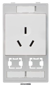 Socket, 2 cut-outs for HIFF data module, China, Screw termination, 10 A, 250 V AC, 50 Hz, Conductor cross-section: 4 mm², Thermoplastic