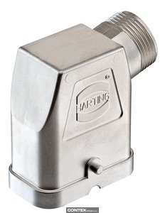 Hood, for Han-Compact half cable gland, for Han Q 8/0 Crimp (max. 400 V), Han Q17/0 and Han Q Data RJ45, Size: Han-Compact, Single locking lever, Side entry, 1x M25, Material (hood/housing): Zinc die-cast, Nickel plated