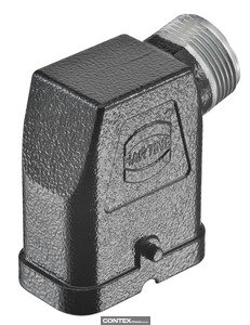 Hood, for Han-Compact half cable gland, for Han Q 8/0 Crimp (max. 400 V), Han Q17/0 and Han Q Data RJ45, Size: Han-Compact, Single locking lever, Side entry, 1x M25, Material (hood/housing): Zinc die-cast, Powder-coated, RAL 9005 (jet black)