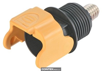 Screw mounted housing, incl. male contact with M8 bolt termination, With unlocking protection, Single locking lever, Material (hood/housing): Polyamide (PA), RAL 9005 (jet black), RAL 1028 (melon yellow)