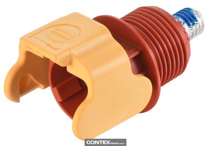 Screw mounted housing, incl. male contact with M8 bolt termination, With Tuflok protection, With unlocking protection, Single locking lever, Material (hood/housing): Polyamide (PA), RAL 3001 (signal red), RAL 1028 (melon yellow)