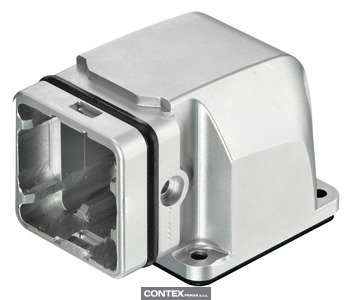 Bulkhead mounted housing, Angled, Size: Han-Yellock 10, Push button, Material (hood/housing): Zinc die-cast, Passivated, Metallic, Material (seal): NBR