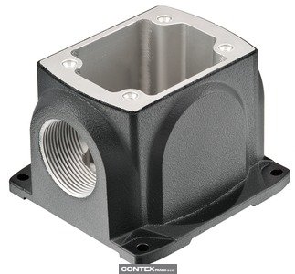 Surface mounted housing, Size: Han-Yellock 30, Screw locking, Side entry, 1x M32, Material (hood/housing): Aluminium die-cast, Powder-coated, RAL 7021 (black grey), Material (seal): NBR