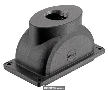 Panel feed through housing, Size: Han-Yellock 60, Screw locking, Top entry, 1x M32, Material (hood/housing): Aluminium die-cast, Powder-coated, RAL 7021 (black grey)